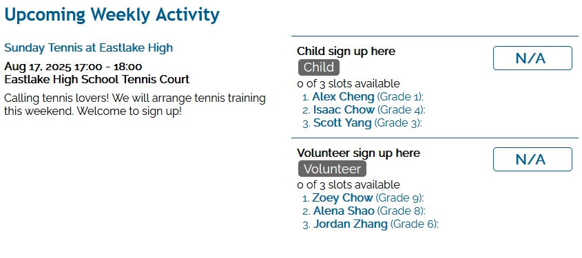 我们去年的2位主力志愿者教练,12年级的Ethan和Sophia,由于相继升入大学,所以离开了我们的志愿者团队。但是7年级的Jordan教练在经过去年1年的培养和成长以后,今年已经逐渐成熟, 并成长为一个合格的独立志愿者教练了。