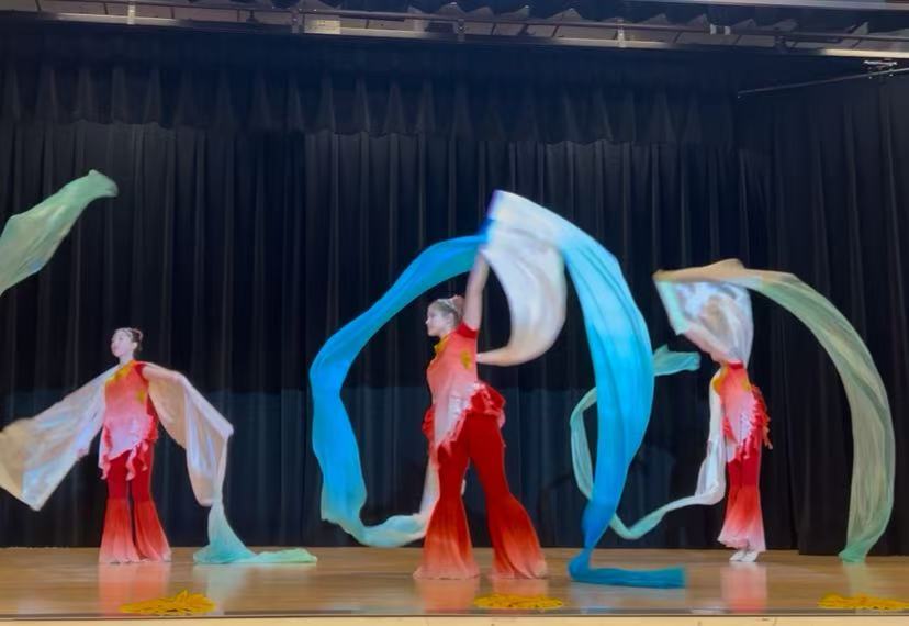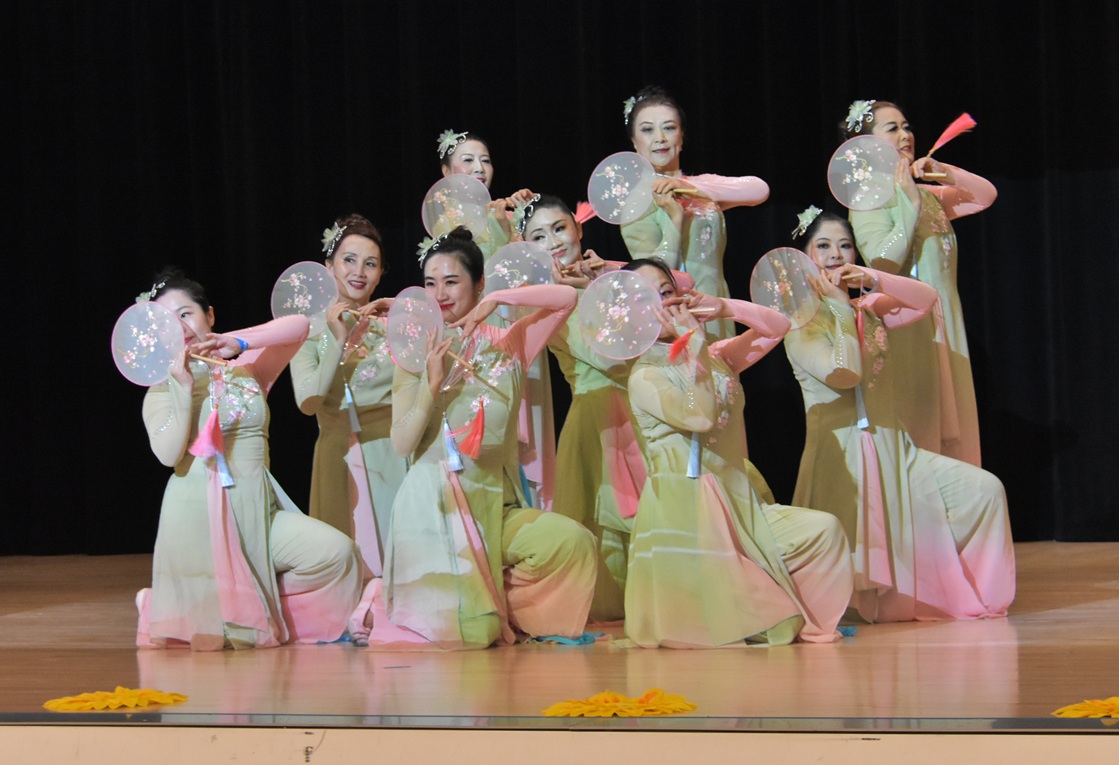 Huayin team members wore light and elegant dance clothes, held fans, and danced to the beautiful melody.