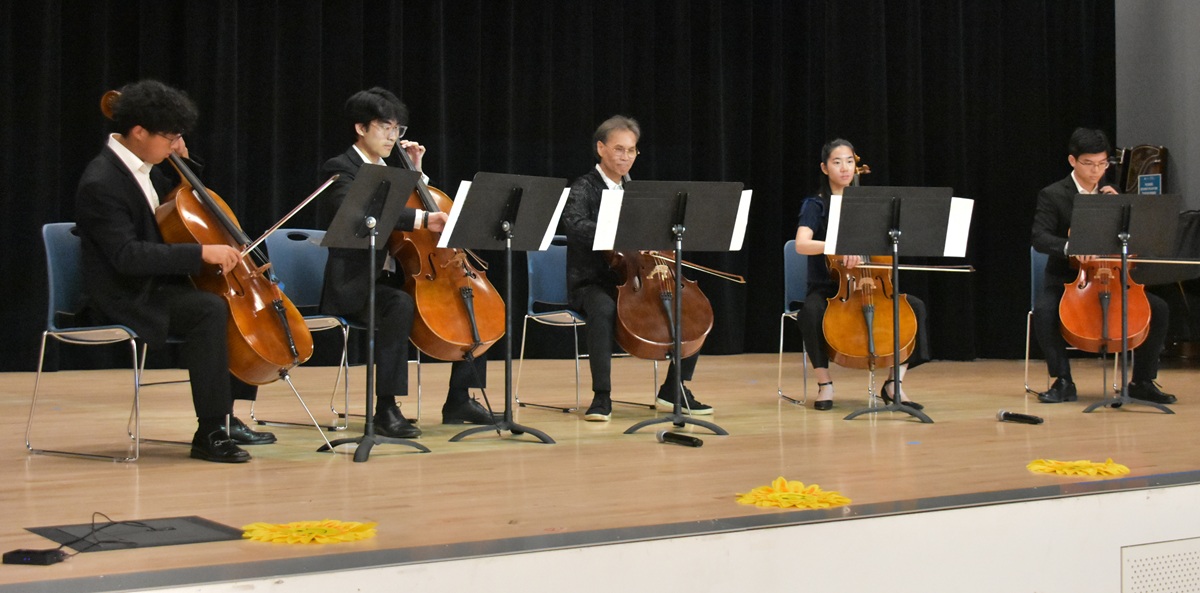 We are also honored to invite the famous teacher Chen Kai in the Seattle area and his students to perform a cello quintet, Bat Overture.